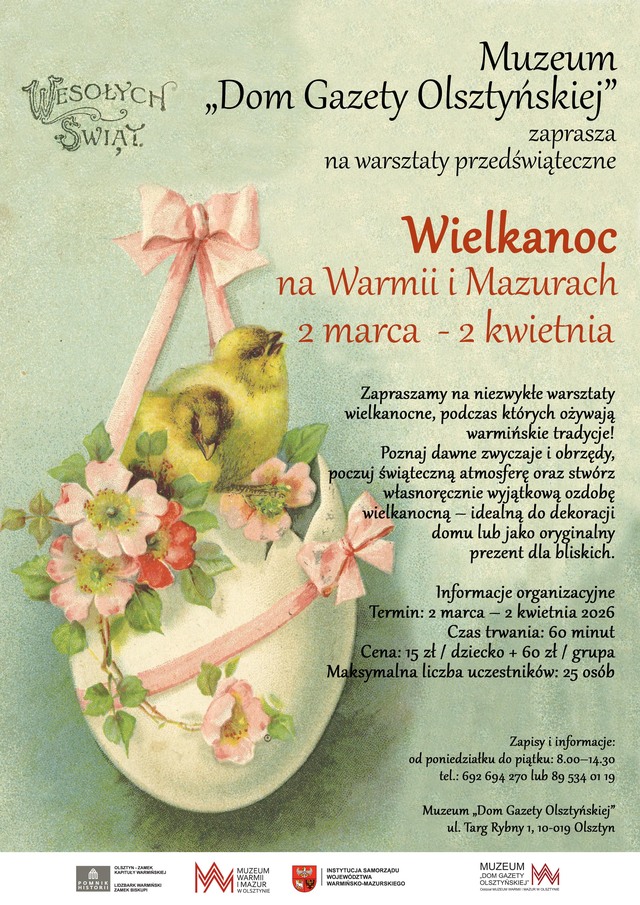 Zapraszamy na warsztaty przedświąteczne "Wielkanoc na Warmii i Mazurach" które odbędą się od 2 marca do 2 kwietnia w Muzeum "Dom Gazety Olsztyńskiej"!